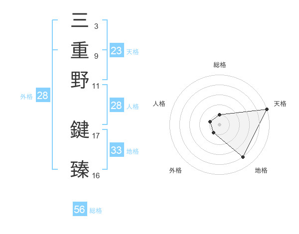 三重野 鍵臻さんを姓名の画数から五運を鑑定
