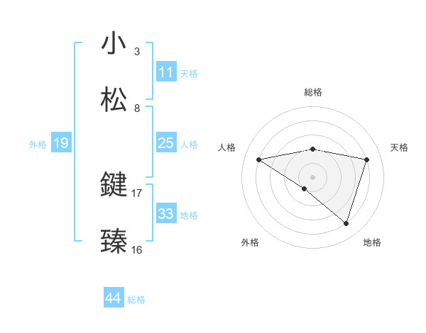 小松 鍵臻さんの総格は44画の2点!