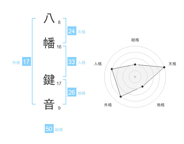 八幡 鍵音さんの総格は50画の2点!