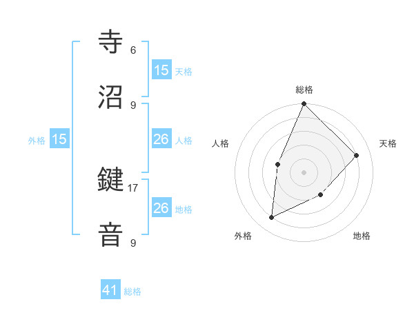 寺沼 鍵音さんの天格は15画の4点!