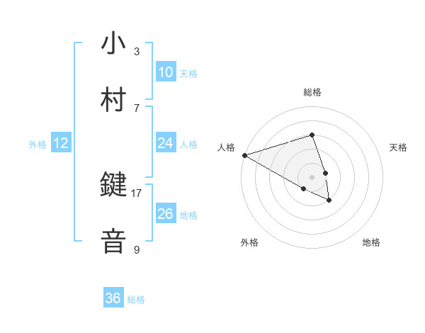 小村 鍵音さんを姓名の画数から五運を鑑定