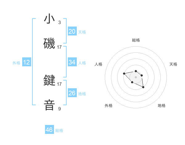 小磯 鍵音さんを姓名の画数から五運を鑑定