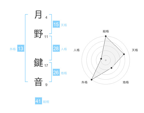 月野 鍵音さんを姓名の画数から五運を鑑定