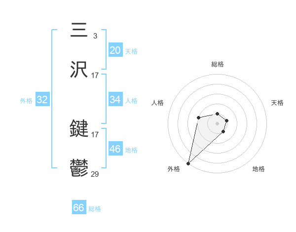 三沢 鍵鬱さんを姓名の画数から五運を鑑定