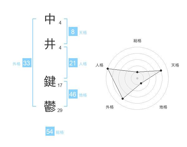 中井 鍵鬱さんの天格は8画の4点!