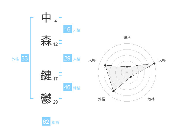 中森 鍵鬱さんを姓名の画数から五運を鑑定
