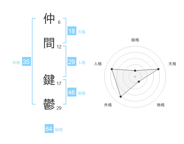 仲間 鍵鬱さんを姓名の画数から五運を鑑定