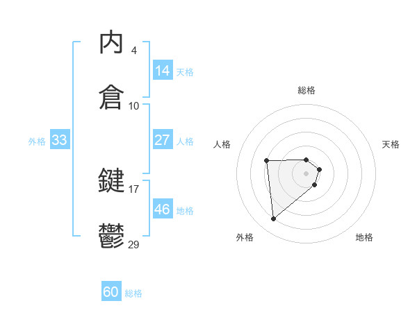 内倉 鍵鬱さんを姓名の画数から五運を鑑定