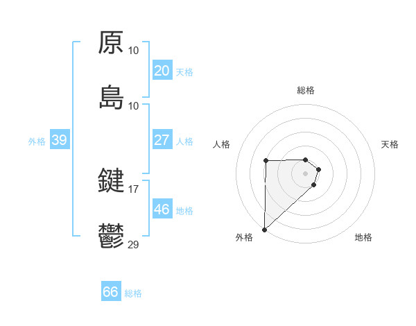 原島 鍵鬱さんを姓名の画数から五運を鑑定