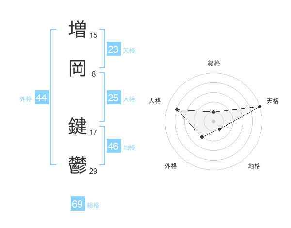増岡 鍵鬱さんを姓名の画数から五運を鑑定