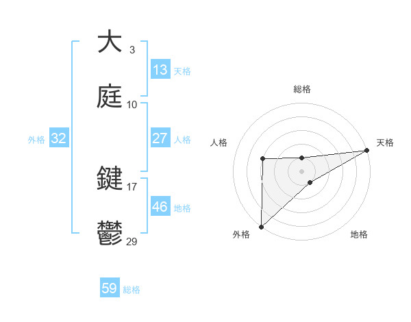 大庭 鍵鬱さんを姓名の画数から五運を鑑定