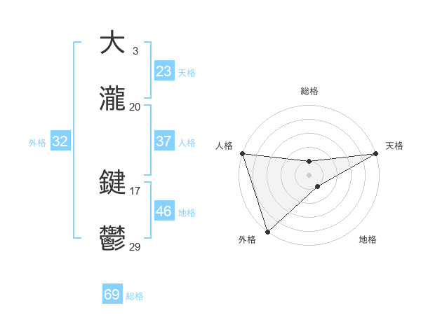 大瀧 鍵鬱さんを姓名の画数から五運を鑑定