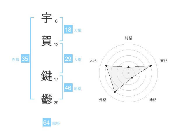 宇賀 鍵鬱さんの総格は64画の1点!