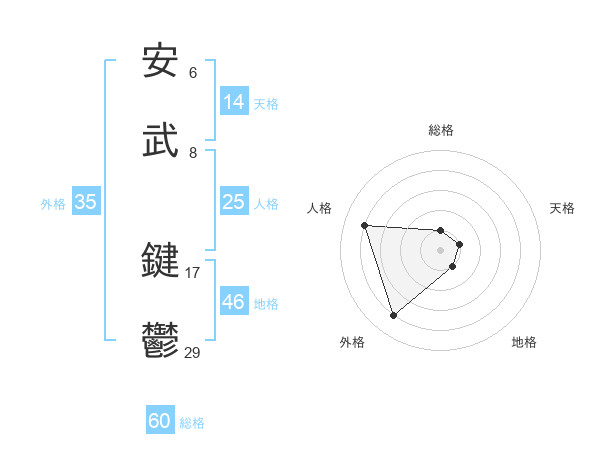 安武 鍵鬱さんを姓名の画数から五運を鑑定