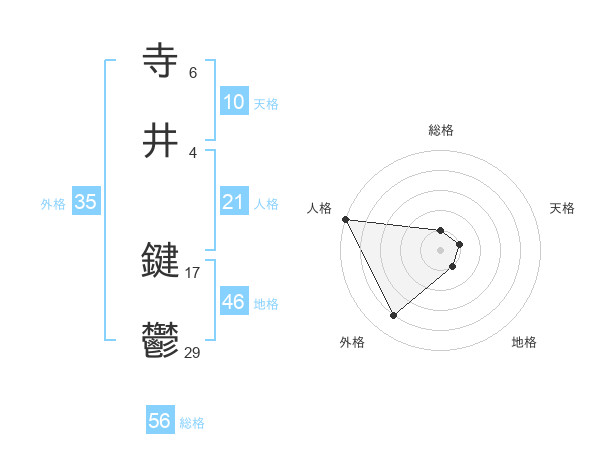 寺井 鍵鬱さんを姓名の画数から五運を鑑定