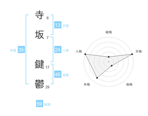 寺坂 鍵鬱さんの天格は13画の5点!