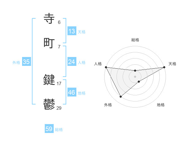 寺町 鍵鬱さんの総格は59画の1点!