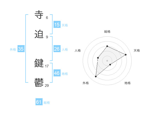 寺迫 鍵鬱さんを姓名の画数から五運を鑑定