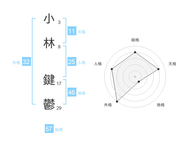 小林 鍵鬱さんを姓名の画数から五運を鑑定