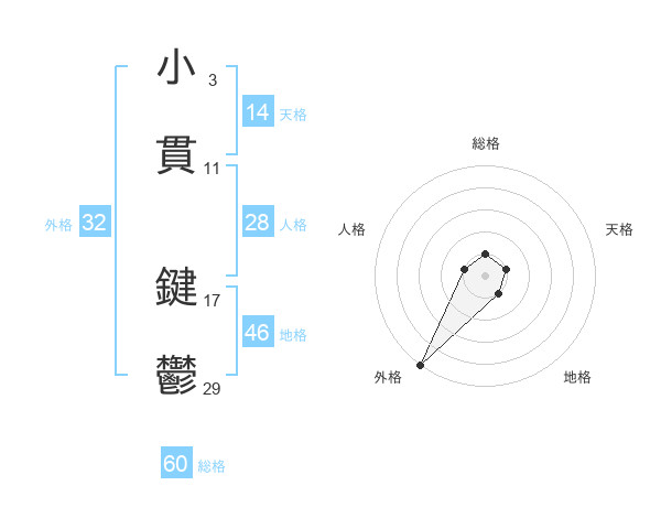 小貫 鍵鬱さんの総格は60画の1点!
