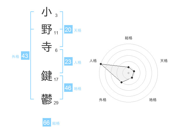 小野寺 鍵鬱さんの名前の鑑定結果は!