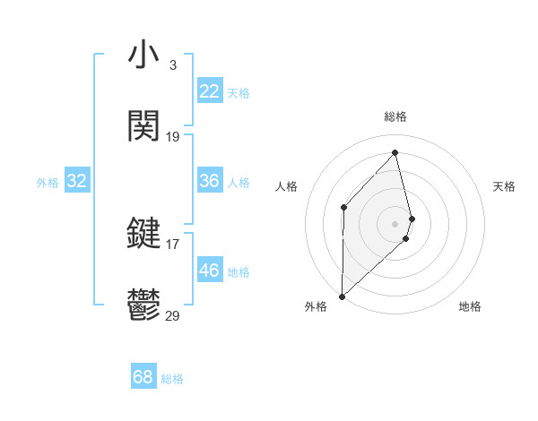 小関 鍵鬱さんの総格は68画の4点!