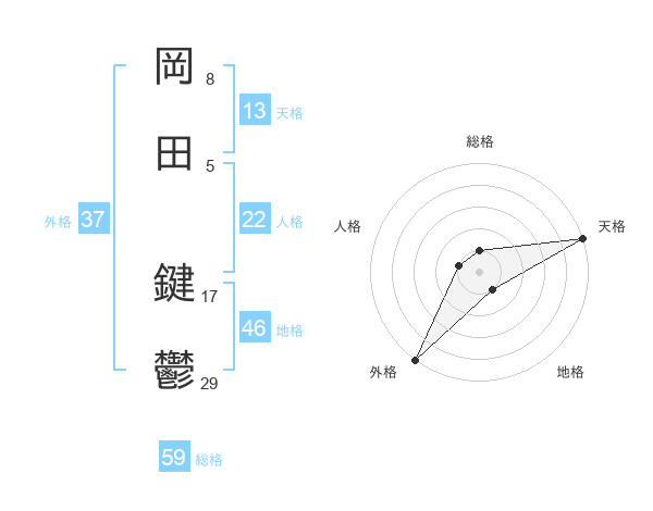 岡田 鍵鬱さんの総格は59画の1点!