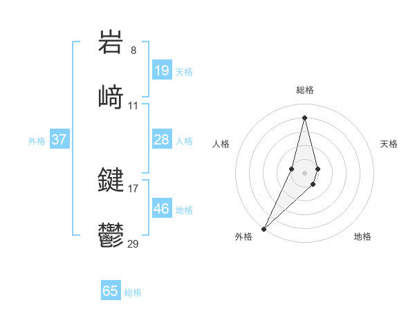 岩﨑 鍵鬱さんの総格は65画の4点!