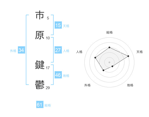 市原 鍵鬱さんを姓名の画数から五運を鑑定