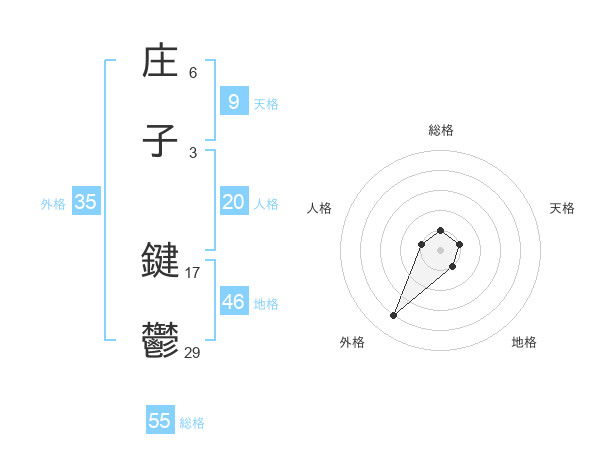 庄子 鍵鬱さんの総格は55画の1点!