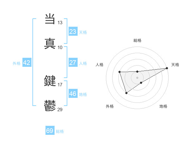 当真 鍵鬱さんの天格は23画の5点