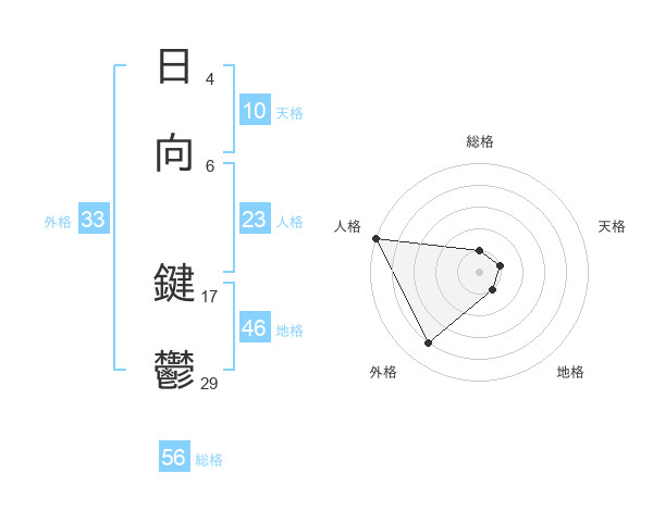 日向 鍵鬱さんを姓名の画数から五運を鑑定