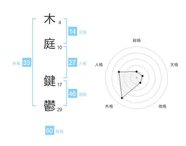 木庭 鍵鬱さんの名前の鑑定結果は!