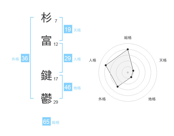 杉富 鍵鬱さんの総格は65画の4点!