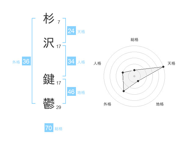 杉沢 鍵鬱さんを姓名の画数から五運を鑑定