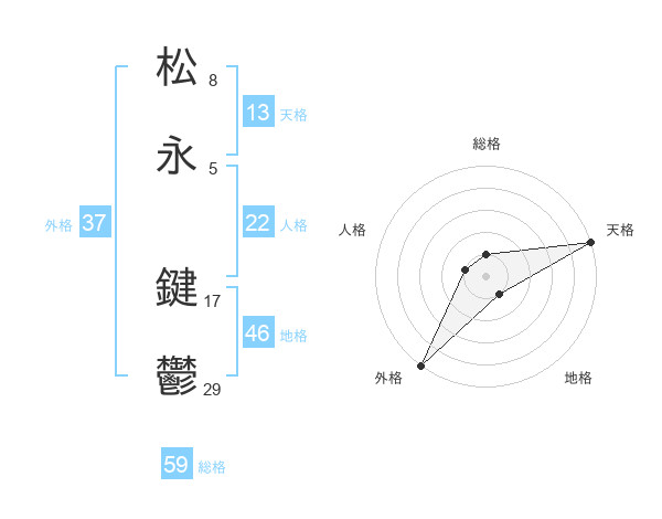 松永 鍵鬱さんの天格は13画の5点!