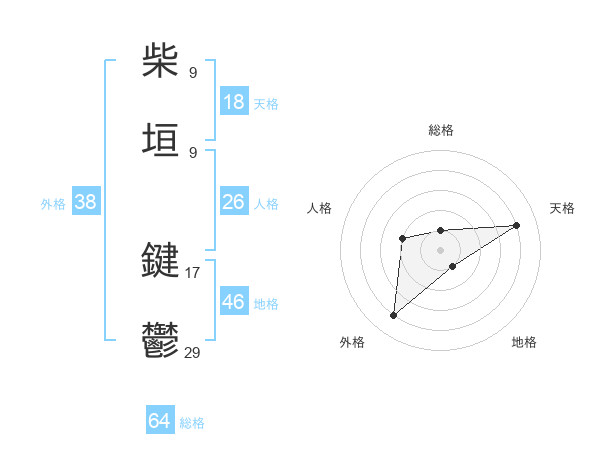 柴垣 鍵鬱さんを姓名の画数から五運を鑑定