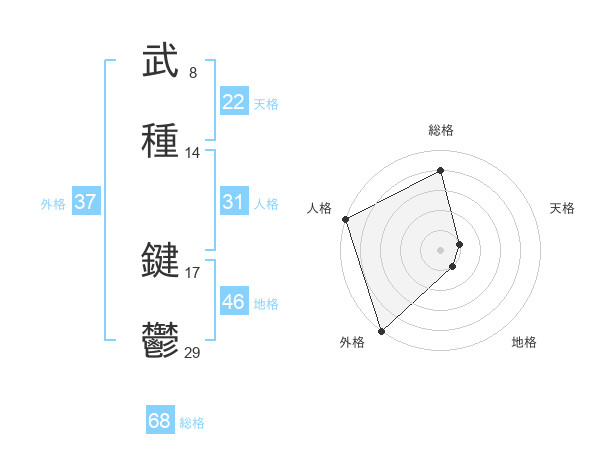 武種 鍵鬱さんを姓名の画数から五運を鑑定