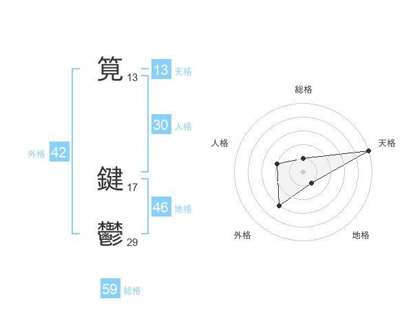 筧 鍵鬱さんの総格は59画の1点!