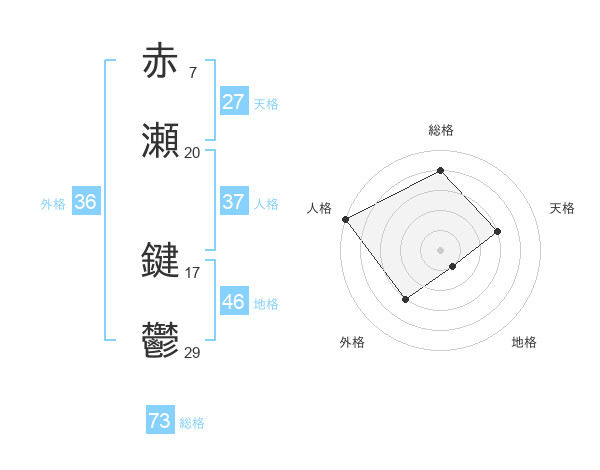 赤瀬 鍵鬱さんの総格は73画の4点!