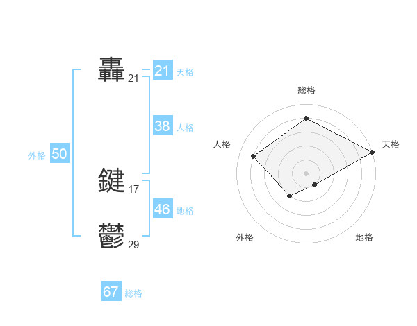 轟 鍵鬱さんを姓名の画数から五運を鑑定