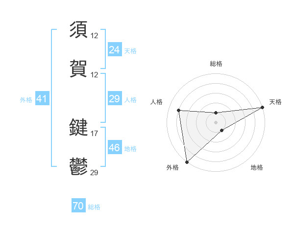 須賀 鍵鬱さんの総格は70画の1点!