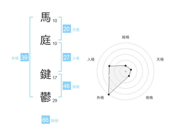 馬庭 鍵鬱さんの外格は39画の5点!
