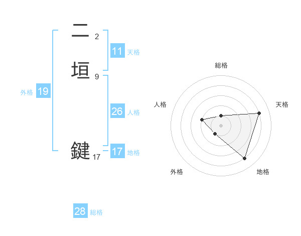 二垣 鍵さんの外格は19画の1点!