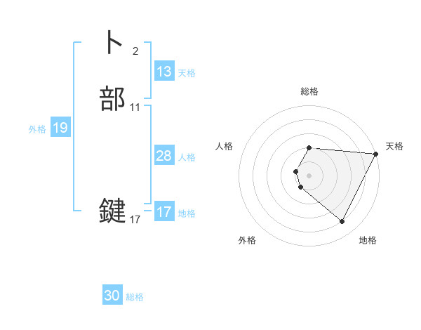 卜部 鍵さんの天格は13画の5点!