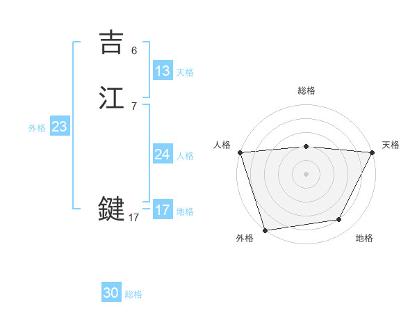 吉江 鍵さんの総格は30画の2点!