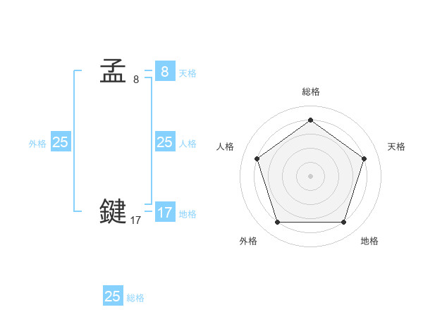 本サイトの鑑定結果の正当性は保証しません。鑑定結果は参考程度にお読みください。実際の名づけにご利用される場合は、姓名判断についてご自身でよくお調べください。