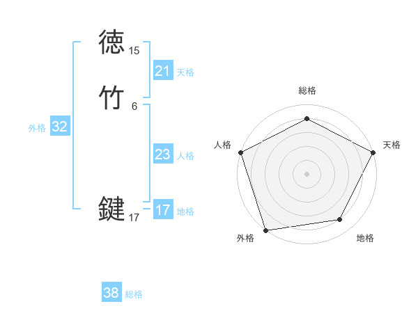 徳竹 鍵さんを姓名の画数から五運を鑑定