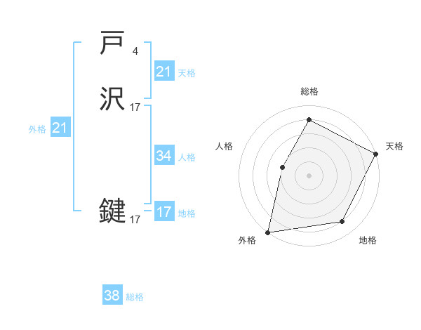 戸沢 鍵さんを姓名の画数から五運を鑑定