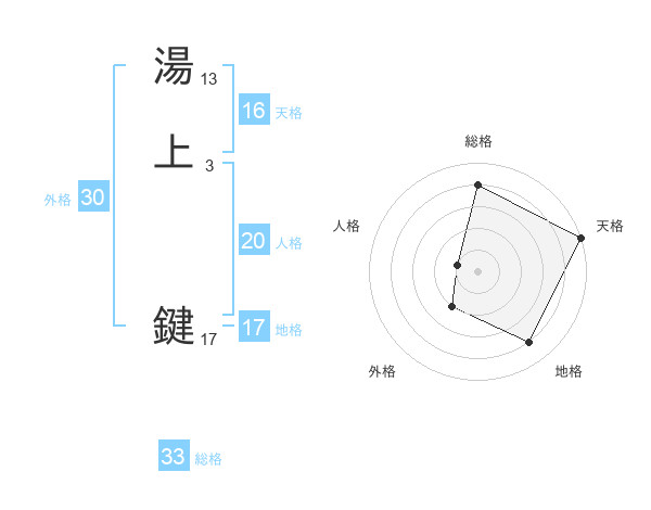 湯上 鍵さんの総格は33画の4点!